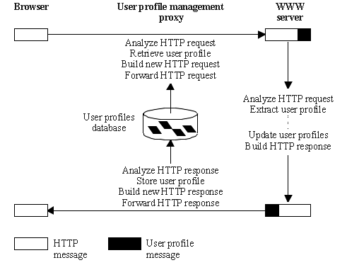 To present relevant information to users, more and more applications on the World Wide Web are using personalization techniques. Such methods require Web providers to manage and store user profiles. The most common architectures for personalized Web applications are to store the user profiles either at the server or at the client (browser). Both architectures have advantages and disadvantages, but neither can at the same time support the "collaborative filtering" personalization technique and the sharing of user profiles between different applications. Furthermore, programmers do not get the benefit of a standard environment for developing personalized applications. We therefore introduce the concept of a user profile management agent and locate it at a Web proxy. Our proxy manages and stores the user profiles and mediates the communications between the users and the Web servers. This not only relieves the personalized servers from the tasks of user profile management but also makes it possible to provide support for advanced personalization techniques such as collaborative filtering. The effectiveness of the proposed architecture has been demonstrated by a prototype of the proxy and by two implemented applications.