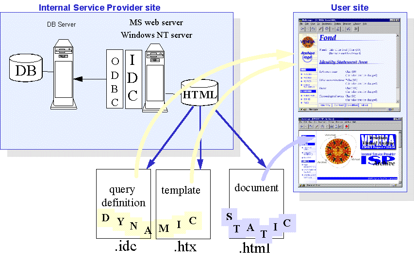 The strongest impact of Web technology can be found in the information presentation and dissemination aspect of digital archives. The Web has demonstrated the possibilities of networked document access mechanisms. Through the hyperlink concept supported in a simple document format large amounts of networked information have been generated in a short time. The Web has shown a tremendous growth rate and Web services account for the largest amount of network traffic today [3]. The strength of Web applications is the independence of hardware configurations coupled with their distributed nature. Web applications have the potentially to reach all users on the Internet. The Web has set the standard that allows the building of front-end interfaces to general networked information system applications. With the support for Java applets in Web Client software the capabilities of these front-end interfaces are further extensible.